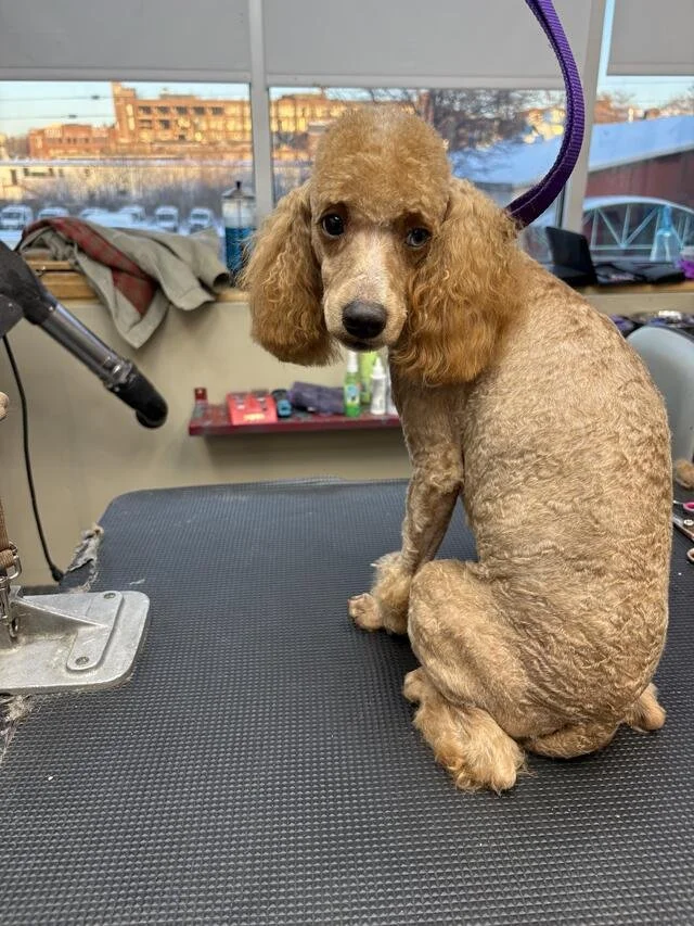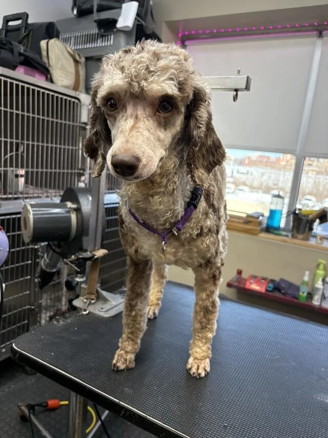 Standard Poodle Luigi has been newly groomed and is fantastic for grooming. A fenced yard is required for him. He will do well with any female dog of his size but probably not small dogs. . Adoption fee $650 with a $150 refund after neuter. Inquiries to cindy@maprescue.org