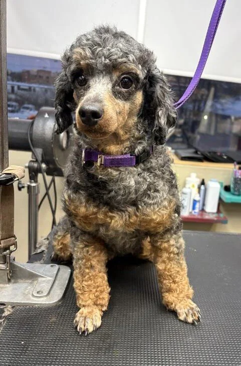 Standard Poodle Daisy has been newly groomed. We have decided that she does not need to be adopted with Luigi. She will do well with any male dog of her size. She will require a fenced yard. She turned a year old in June but has not had her first estrus cycle, so we have not spayed her yet. Adoption fee $650 with a $150 refund after spay. Inquiries to cindy@maprescue.org