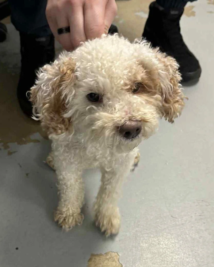 Gizmo was surrendered to a local shelter. The family who owned him said they had no time for him. He is a darling little dog. With those blue eyes, he is a Poodle-mixed breed dog, but his hair is very poodle-y. He is current on all vaccines, HW negative, has been treated for fleas, ticks and worms. His paperwork states that he is 6 years old but his behavior is that of a much younger dog. He loves people and other dogs. He lived with children. He needs to be neutered.