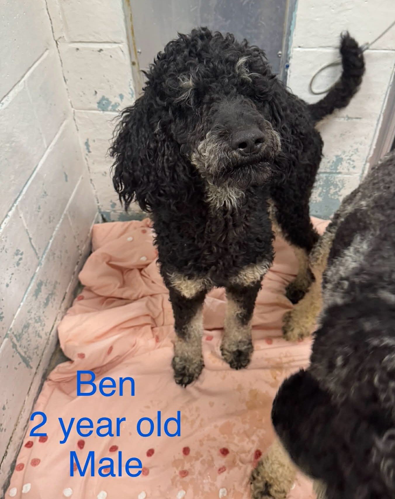 Ben is a phantom-marked Standard Poodle. He is very friendly, quite lively and bouncy and so will do well in an active family with a fenced yard. He is current on all vaccines and heartworm negative. Adoption fee $750 with a $250 refund after he is neutered. Inquiries to cindy@maprescue.org